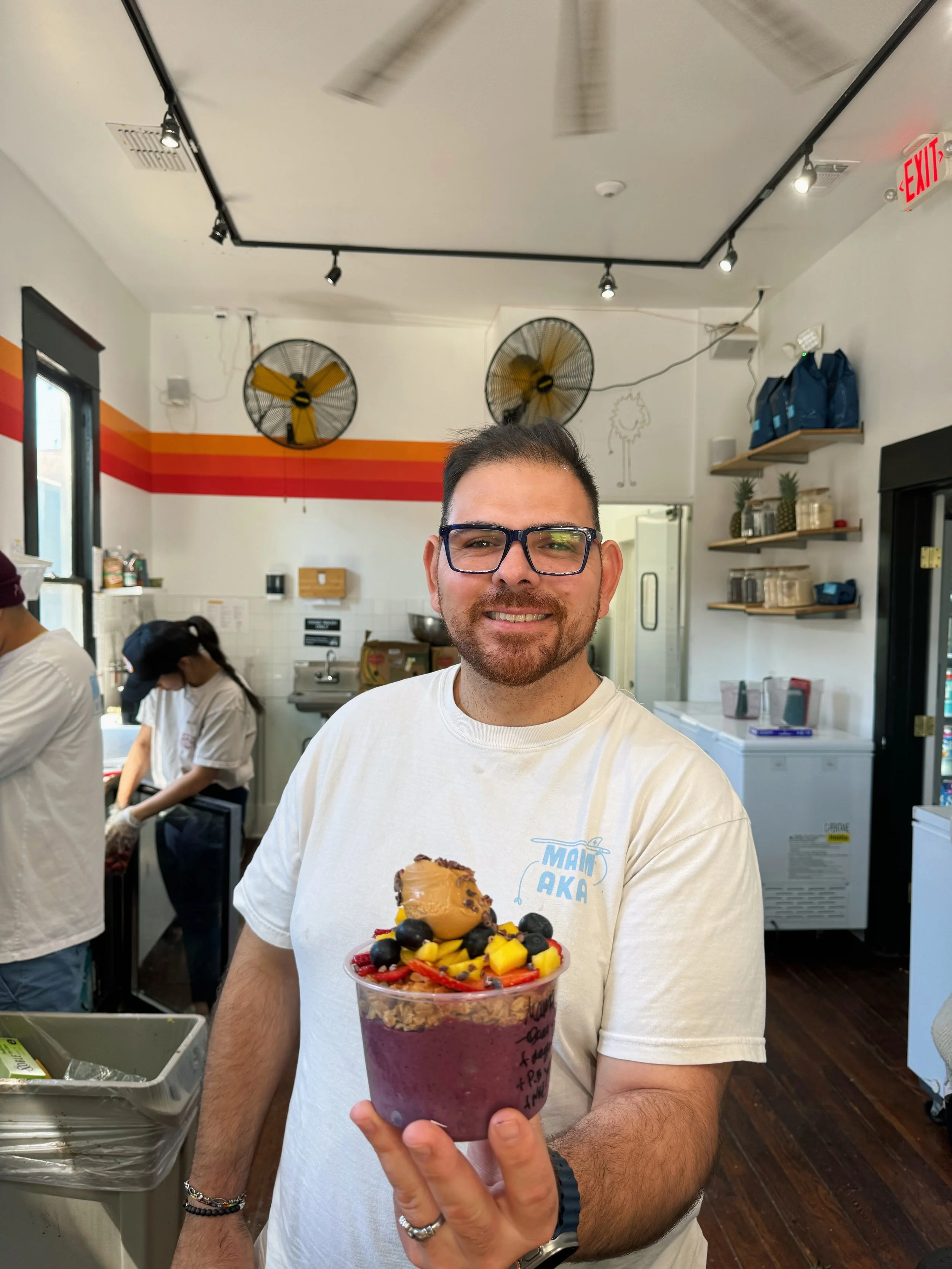 Go-to order: Regular Mamaka bowl with OJ, add nibs, almond butter, and shreds on top!